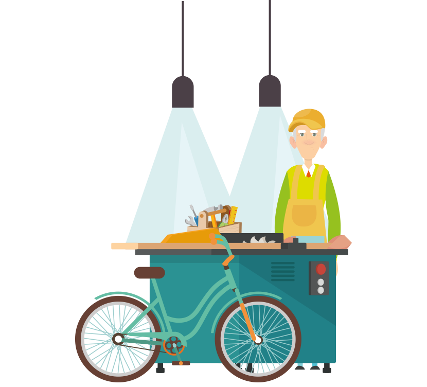 After lunch, Robert plans to go for a bike ride. But last time he was out, the bike’s gears weren’t switching properly. To fix it, he takes the bike into his garage, which is lit with a bright white light. To be able to see the gears even better, he also turns on the bright white light that hangs above his workbench.